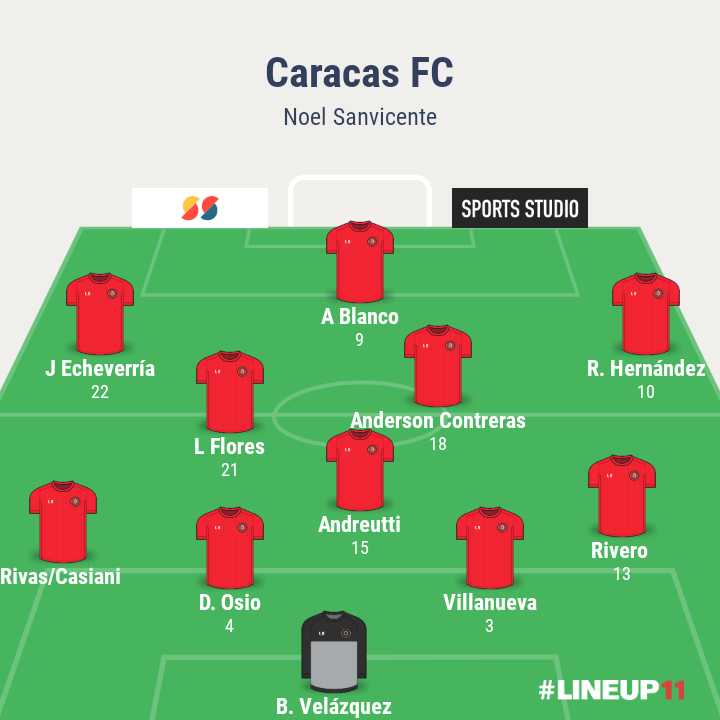 ¿Como formará el equipo de Sanvicente? Como mencionamos anteriormente el equipo tienen varias bajas obligadas por suspensión. Los 2 laterales titulares y el extremo izquierdo no podrán jugar. Notaroberto no era el lateral izquierdo titular allá por marzo, pero Bernardo Añor dejo el club y el lugar le quedo al numero 14. Esa duda en la zona izquierda es quizás la mas importante, porque no tiene variantes ahí. Quizás ingrese Rosmel Villanueva pasando Osio al lateral, como sucedió contra DIM o puede ingresar Rivas. En el lateral derecho puede actuar Casiani o puede quizás pasar Carlos Rivero a la derecha. El extremo izquierdo Celis podría ser reemplazado por Jorge Echeverria. El probable equipo: Velasquez; Rivero, Villanueva, Osio, Rivas o Casiani; Anderson Contreras, Andreutti, Leo Flores; Robert Hernández, Alexis Blanco, Echeverria. El sistema en general cambia entre un 4-3-3 y un 4-2-3-1 en ataque dependiendo de la posición que tomen Flores y Contreras. En repliegue (Algo bastante común en el equipo) el sistema es 4-5-1, quedando solo Alexis Blanco como punta.
