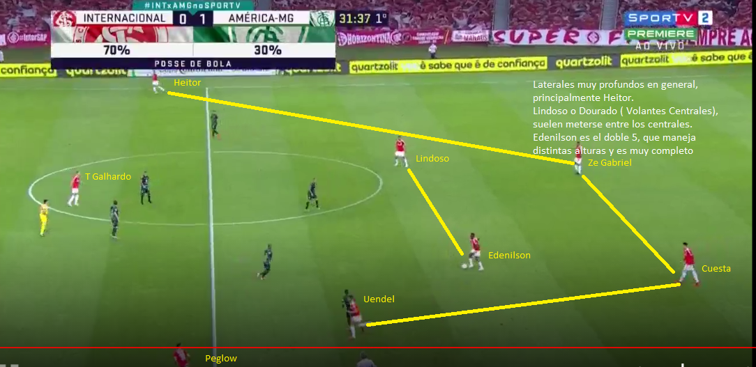4°- Edenilson. La ausencia del volante por COVID es muy importante. Un box to box muy completo, que maneja los hilos del equipo, que tiene dinámica y hasta llegada al gol. Sin el 8, el doble 5 entre Lindoso y Dourado, suele carecer de profundidad, porque muchas veces juegan en linea y no ganan mucha altura. Edenilson era quien se soltaba y jugaba entre lineas si era necesario. Lo positivo para Braga es que podra contar con Patrick con mas ritmo, para aportar su potencia y dinámica por la banda izquierda. El nro 14 tiene 3 goles y 2 asistencias en el Brasileirao, siendo un volante. Es el jugador que mas desequilibra del equipo con un promedio de 2.8 regates, gracias a su fuerza y dinámica. Además, esa potencia le permite ayudar mucho en defensa donde promedia 2.4 entradas y 0.7 intercepciones por encuentro. Otro jugador muy completo, que en este caso podrá utilizar Inter.