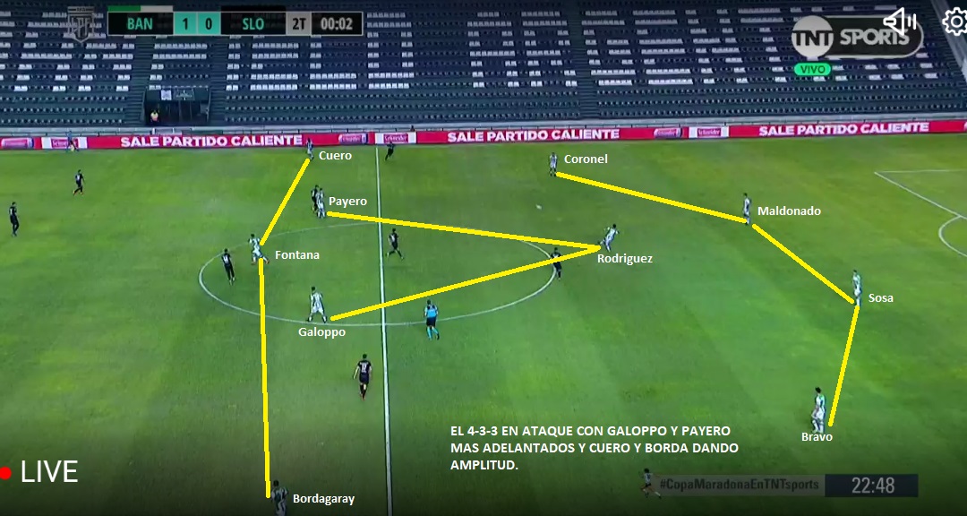 ¿Como formará el equipo de Sanguinetti? No hay dudas prácticamente en el equipo y no las hubo en toda la Copa. Arboleda; Coronel, Maldonado, Lollo, Bravo; Payero, Rodríguez, Galoppo; Cuero, Fontana, Bordagaray. Un 4-3-3 que en defensa es 4-1-4-1 y que salvo por suspensiones o alguna lesión siempre se ha repetido. Contra Atlético Tucumán faltó Bravo por suspensión, contra Gimnasia no estuvo Payero y contra San Lorenzo Lollo, por lo mismo. Después siempre repitió equipo (incluso en la primera fase, hasta que sufrió la lesión de Cuero y lo reemplazo con Álvarez). 11 encuentros casi repitiendo equipo, afianzando una idea y compitiendo. Lo más rescatable de esto, es que “Archu” armó esto casi sin tiempo. SI comparamos con los ultimas formaciones de Falcioni, solo encontraremos a Arboleda, Maldonado, Lollo, Bravo y Rodríguez como titulares. El resto no estaban o no jugaban como titulares. En pocos partidos encontró este funcionamiento. Parece un equipo bien trabajado. Ha tomado muchas cosas de Julio Falcioni y le agrego su impronta (Principalmente en el sistema y sus interiores que son la clave del equipo).