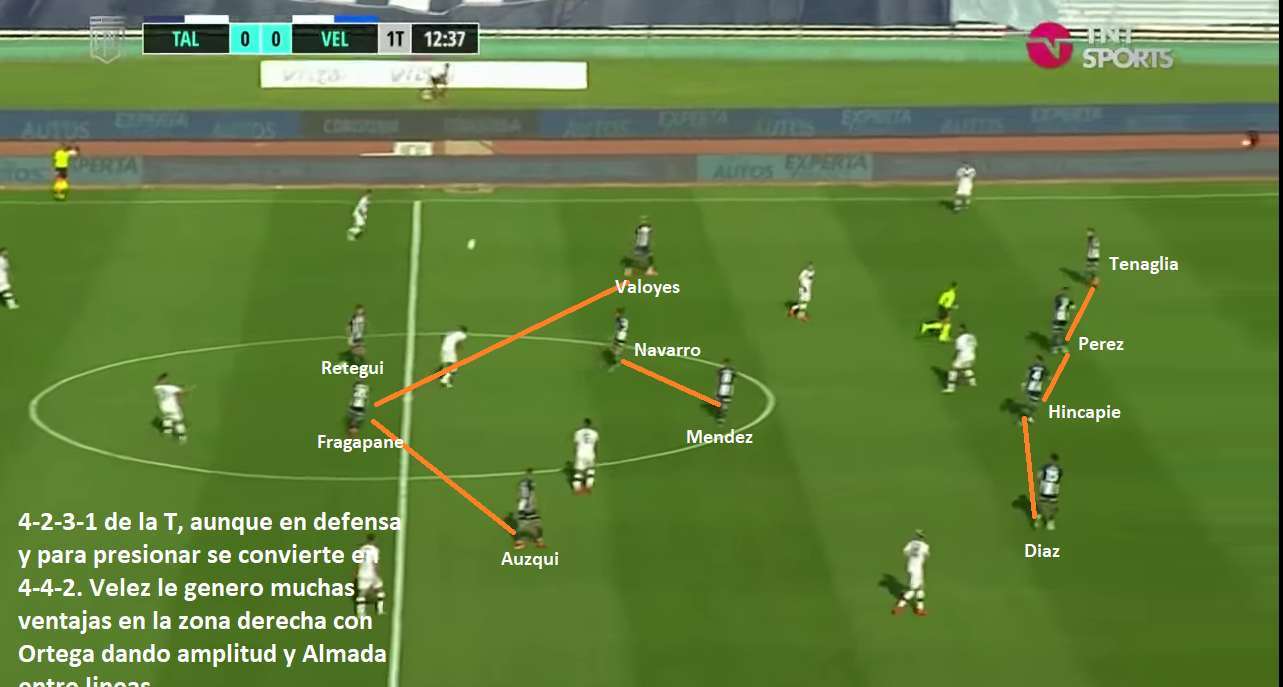 La estructura de la T se ha resentido sin Pochettino. El Ex Boca, era un volante ofensivo con mucha capacidad de gol, pero que se podía sumar al mediocampo. Sin él, ya falta ese nexo. Joel Soñora es mas desequilibrio y Fragapane es un extremo tirado al centro. Antes era un 4-2-3-1 que se podía convertir en 4-3-3 y ahora es un 4-2-3-1 que se convierte mucho en 4-2-4. La lesión de Komar resintió la estructura, aunque Hincapie le da otras cosas. Un central zurdo con buena salida y buenos cambios de orientación. Medina esta intentando construir mucho en salida metiendo a Méndez un poco mas entre los centrales, con Navarro mas alto. Sigue siendo un equipo muy dinámico. Retegui, Valoyez, Auzqui, Fragapane, Navarro, Enzo Diaz, Tenaglia, Méndez. Un equipo muy joven, en el cual corren todos. Sus 5 puntos se explican mas que nada por esa falta de contundencia o profundidad. En el desarrollos de los encuentros podría haber ganado o perdido cualquiera. En un buen día puede ganarle a Boca.