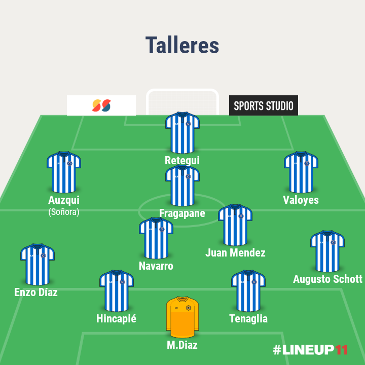 ¿Como formará la T?. Ante la ausencia obligada por sanción de Rafa Pérez y la lesión de Komar, al Cacique Medina no le queda otra que mover piezas. Nahuel Tenaglia que siempre es el lateral derecho, pasará a la zaga central e ingresaría Augusto Schott. El otro cambio que se puede dar, es el regreso de Joel Soñora, para conducir al equipo, en lugar de Carlos Auzqui. El resto serian los mismos que enfrentaron a Velez. El equipo: Marcos Diaz; Augusto Schott, Tenaglia, Hincapie, Enzo Diaz; Navarro, Méndez; Valoyes, Soñora o Auzqui, Fragapane; Retegui. Si juega Auzqui quien jugará por el centro es Fragapane, mientras que si es de la partida Soñora, Fraga iría por la izquierda. El sistema es un 4-2-3-1, aunque sin la presencia de Pochettino a veces queda muy abierto y parece un 4-2-4.