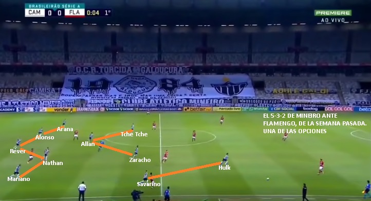 – Las ausencias de Mineiro. En el equipo de Belo Horizonte no estarán Keno ni Guilherme Arana (La banda izquierda titular), mientras que Nacho Fernández y Dodo llegan con lo justo. Sin Arana pierde mucha jerarquía. Un gran lateral, con desborde, buena capacidad para centrar y llegar a posición de gol. Sin Keno pierde el mayor elemento de desequilibrio individual. El 1 contra 1 del extremo izquierdo fue lo mejor de la temporada pasada. Veremos como puede reemplazar estas ausencias.