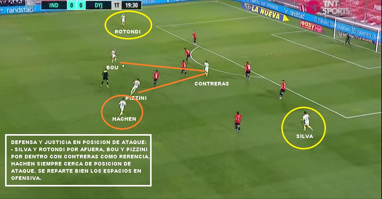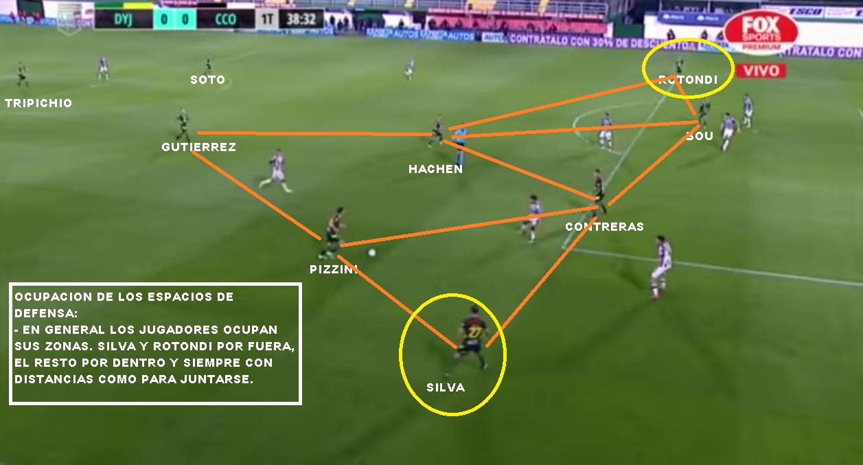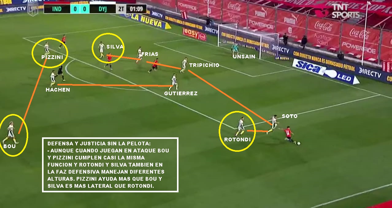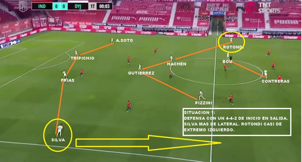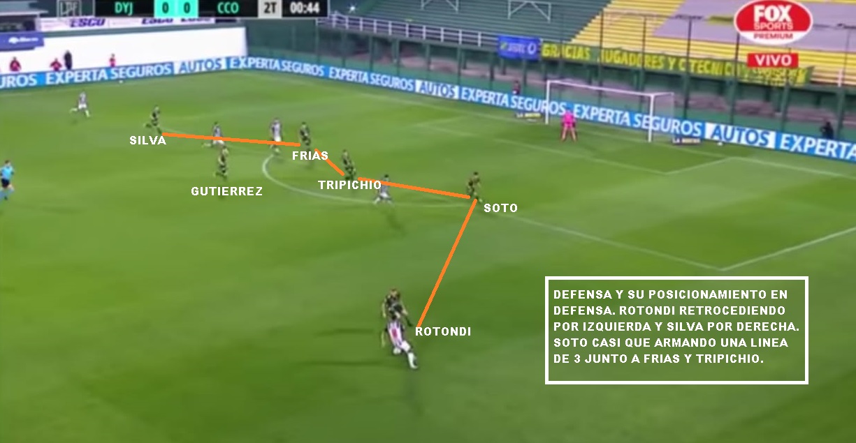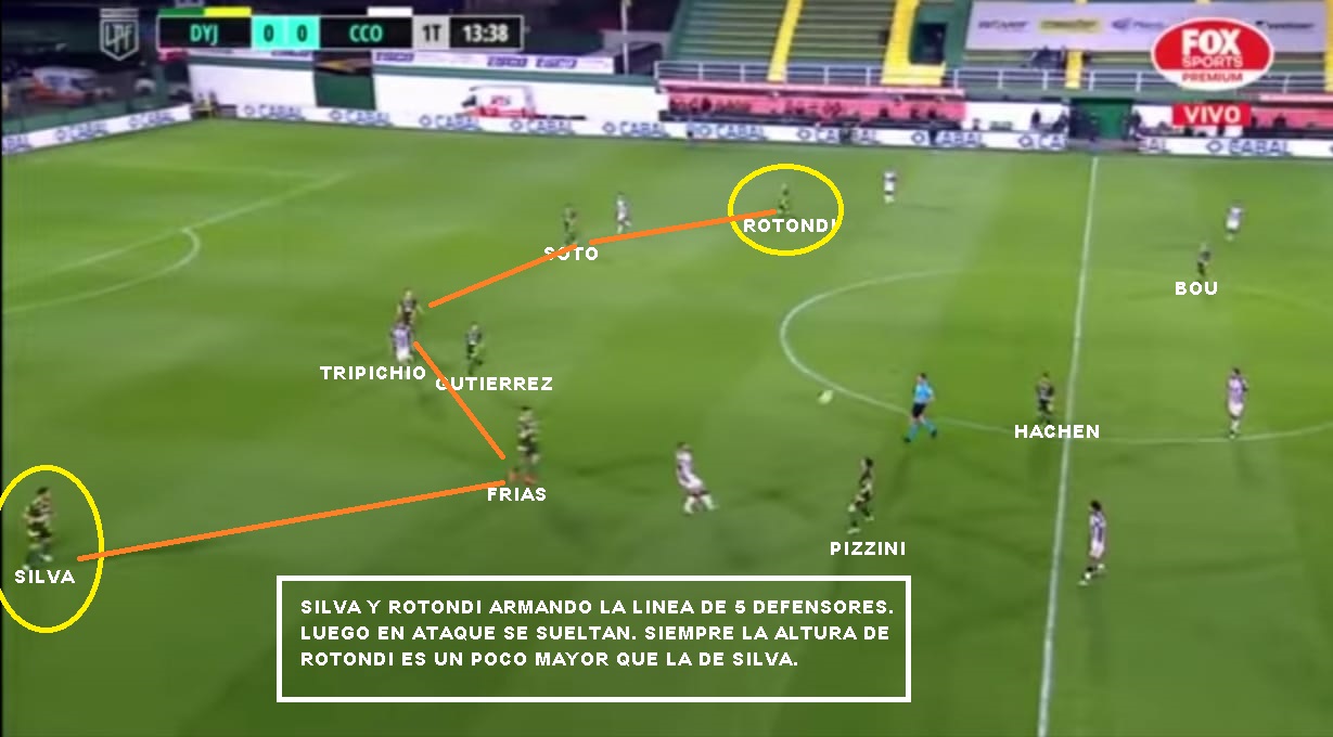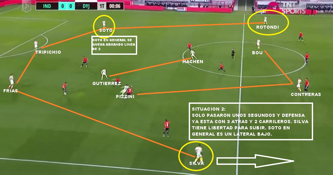 ¿Cómo formará el equipo de Beccacece?. A pesar de que viene de repetir equipo en los últimos 6 partidos y en los cuales no perdió, parece que se vienen cambios. Visitar la Bombonera lo llevaría a tomar más recaudos y puede haber 3 cambios. Nazareno Colombo (Ex Estudiantes), podría ingresar por Tripichio, Raúl Loaiza por Gabriel Hachen y Miguel Merentiel por Rodrigo Contreras. El sistema de Defensa es un 4-4-2 un poco asimétrico que a veces parece más un 3-4-2-1. El probable: Unsain; Hugo Silva, Adonis Frías, Colombo (Tripichio), Soto; Pizzini, Gutiérrez, Loaiza (Hachen), Rotondi; Bou y Merentiel (Contreras). En realidad, también se podría presentar como un 3-4-2-1 que sería: Unsain; Frías, Colombo, Soto; Peña, Gutiérrez, Loaiza, Rotondi; Pizzini, Merentiel; Bou. Generalmente Walter Bou juega del medio a la izquierda detrás de Rodrigo Contreras (Antes de Braian Romero), pero si ingresa Merentiel lo lógico sería que el jugador de Boca sea el 9. Con el ingreso de Loaiza por Hachen busca más compañía para Gutiérrez. El colombiano es más posicional que el zurdo, que suele jugar más liberado. LAS BANDAS SON PARA SILVA Y ROTONDI. Soto es un lateral que generalmente no se proyecta y se queda armando la línea de 3, mientras que Pizzini y Bou se cierran, para que las bandas sean de los 2 jugadores mencionados anteriormente. El zurdo que juega por izquierda igualmente suele ser mucho más ofensivo que Silva.