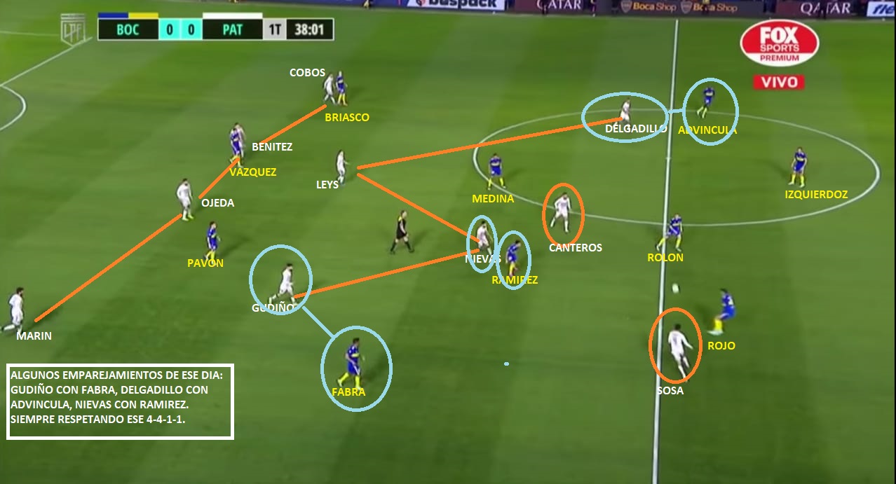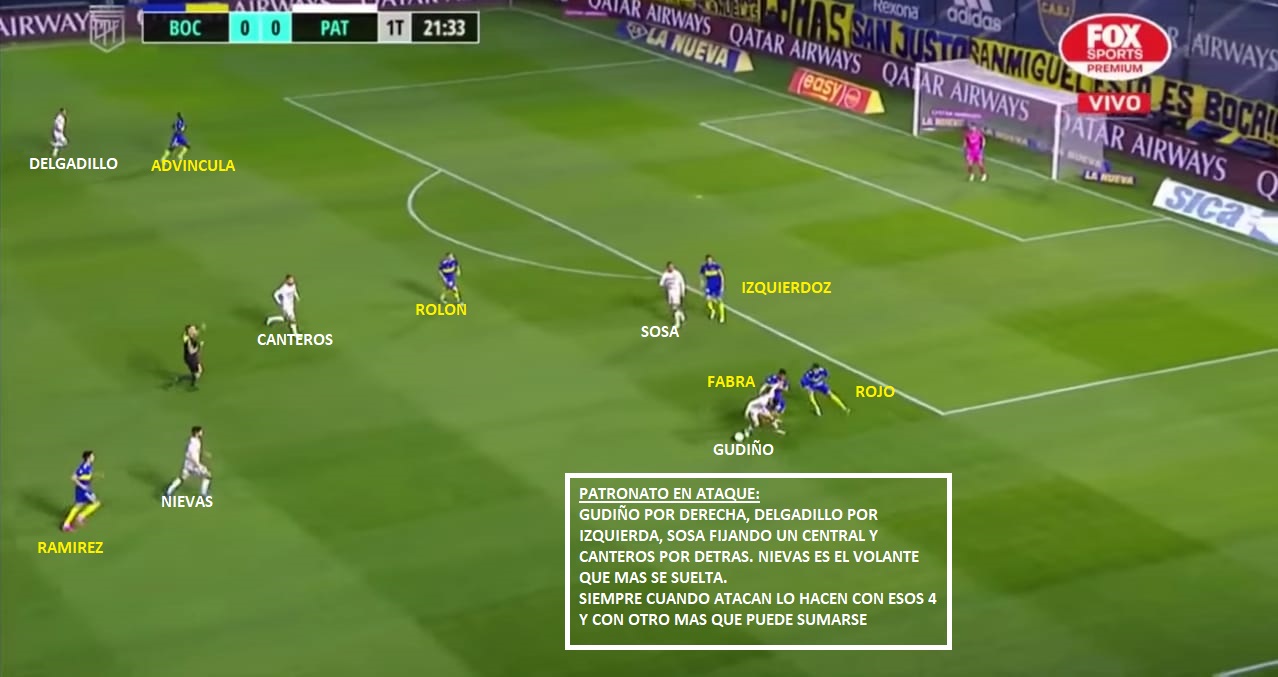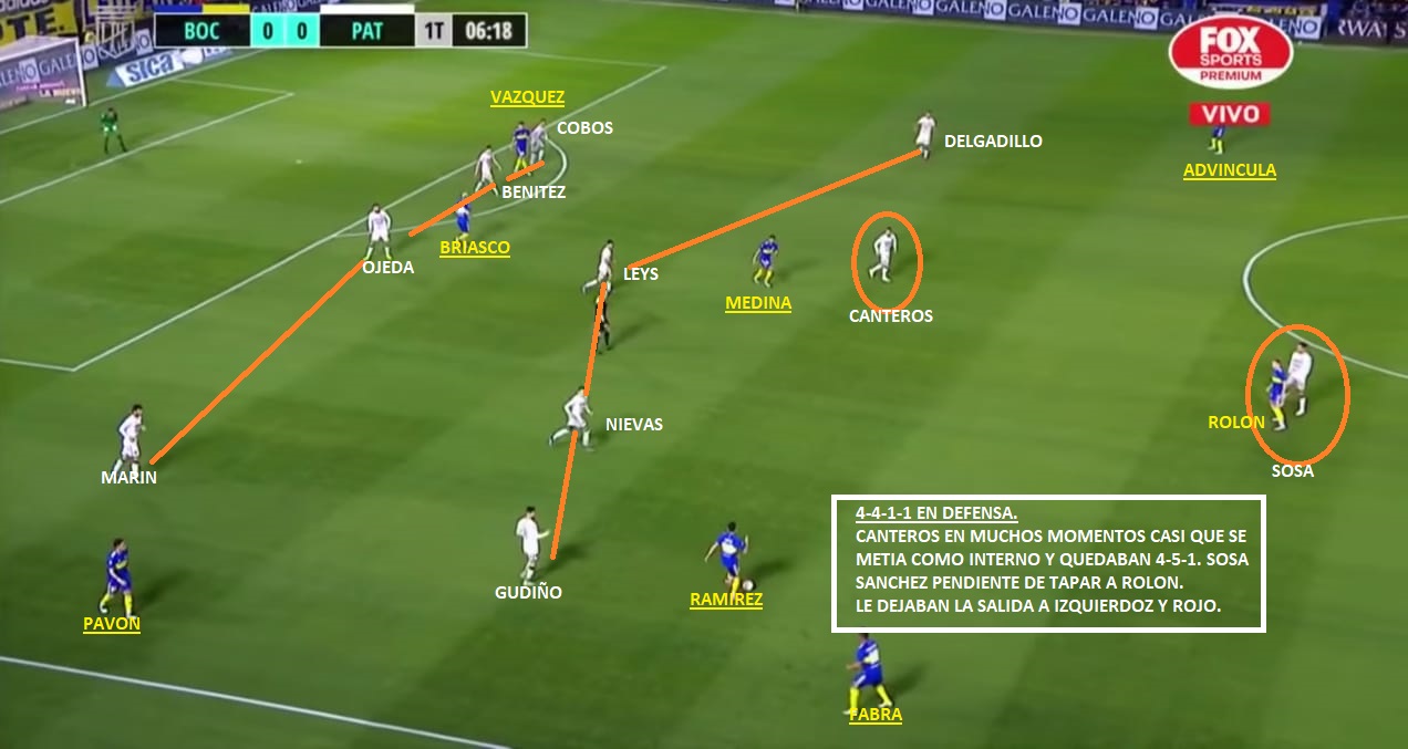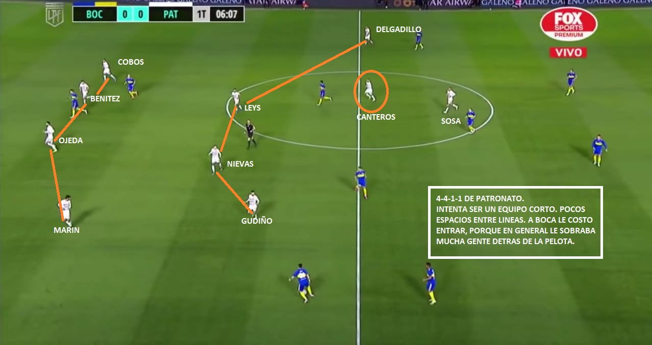 Patronato es un equipo que puede ser complicado, como ya vimos en la Bombonera. Dos líneas de 4 bien plantadas, un armador de juego de buena pegada y una referencia que pelea todo desde arriba y desde abajo contra los centrales rivales. Se agrupa atrás, cediendo la posesión y trata de salir rápido con Gudiño y Delgadillo, intentando llegar a zona de ataque con 4 o 5 jugadores. El regreso de Canteros es clave, porque les da la variante de la pelota parada. Eso, en partidos donde 90 minutos definen todo, puede ser un plus. En el encuentro en la Bombonera, un poco fue así. Gudiño le quito 2 o 3 pelotas a Fabra y salió rápido, agarrando a Boca mal parado. En esa ocasión el 5 del Xeneize era Rolón. Quizás Campuzano este mejor preparado para las transiciones defensivas. Tuvo algunos problemas Boca, para sacar ventajas en salida de balón. Sosa Sanchez tapaba a Rolón y dejaba que Izquierdoz y Rojo salgan, hasta que los presionaba Canteros o Nievas. Costó encontrar pases por dentro. En ese encuentro el Patron también pudo marcar una diferencia con la pelota parada, pero el árbitro anuló mal un gol de Marín, por una falta inexistente a Rossi. Ese Boca era el primero de Battaglia. Hoy el rendimiento es diferente y hasta el esquema (esa vez fue un 4-3-3 aunque con Briasco arrancando por derecha, pero casi siempre terminando por dentro acompañando a Vázquez). Veremos qué partido se plantea.