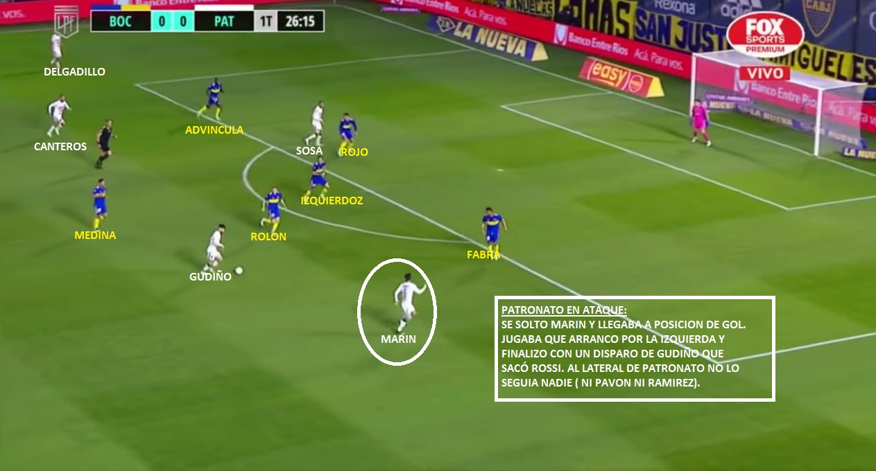 - Duelo por las bandas. Advincula vs Delgadillo, Gudiño vs Fabra o Sandez. En el partido pasado estos duelos fueron importantes. Tanto Fabra como Gudiño se lastimaron cuando pasaron al ataque, pero el de Patronato quedo mejor parado en el duelo. Entre Advincula y Delgadillo no hubo tantas diferencias. Hoy los 2 de Boca parecen mejor parados, hay que ver si logran demostrarlo. La opción de Sandez le daría a Boca más solidez y en ataque se está soltando mejor. Hay que ver si el 9 titular es Orsini o Vázquez, porque seguramente el lateral juvenil se entienda mejor con Luis Vázquez.