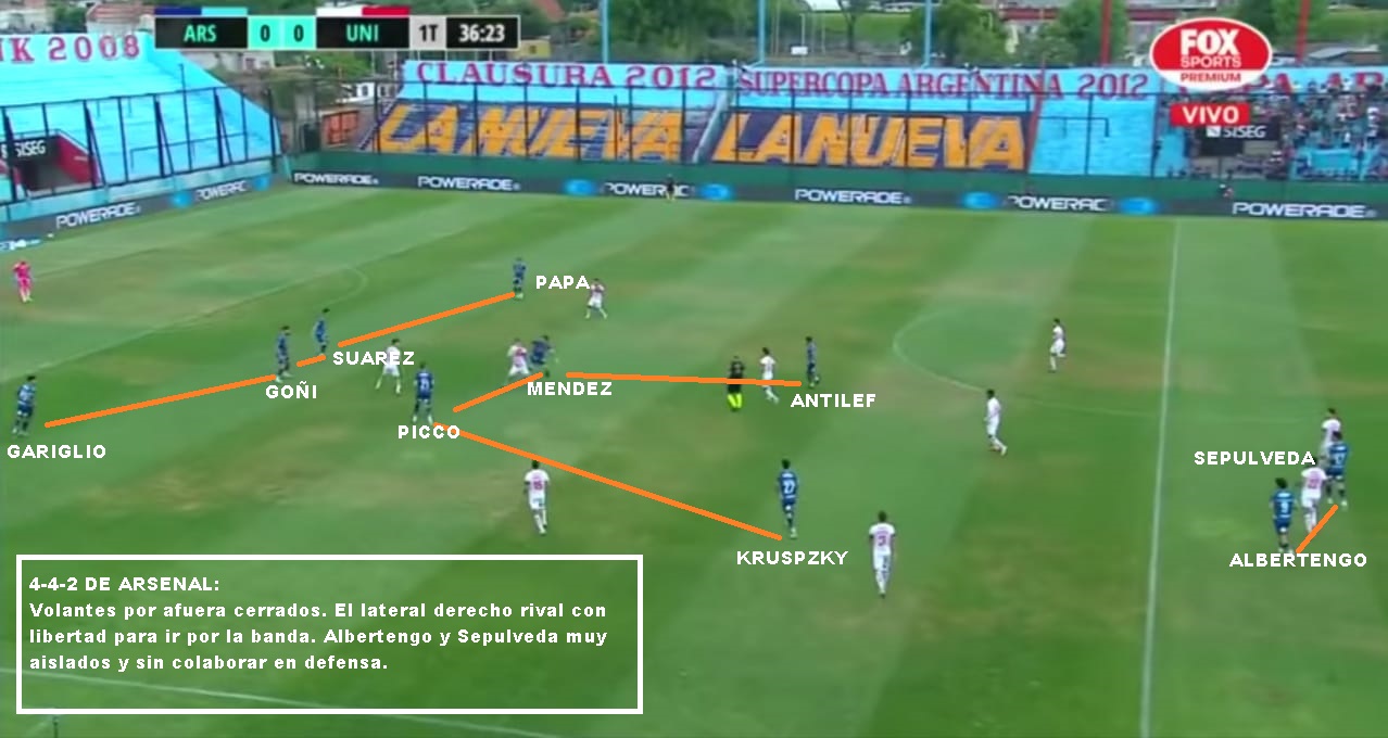Si vamos a los números, nos encontramos con un Arsenal que es de lo más flojo del fútbol argentino. Tan solo 11 goles convertidos en 23 fechas, contra los 33 recibidos. Además, es el equipo que menos dispara con 7.2 por partido (2.4 al arco). También, es de los que menos ocasiones claras ha generado con 1 por partido de las cuales fallan 0.7. En posesión también es de los que menos la tienen con un 44.5% por encuentro.
