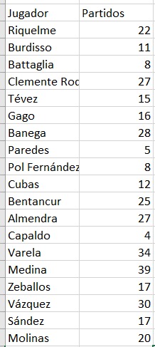 De esos 39 jugadores, sólo diez pasan los 20 partidos jugados en la Primera de Boca. Siendo los cinco más destacados: Rodrigo Bentancur (66 PJ), Sebastián Palacios (49PJ), Andrés Cubas (44PJ), Emanuel Insua (43PJ) y Federico Bravo (37PJ). El resto fueron vendidos o libres.