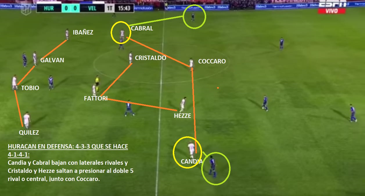 - La capacidad goleadora de la dupla uruguaya: Coccaro y Candia. Hay que tener cuidado con los delanteros de Huracán, porque son molestos, intensos, luchadores y tienen gol. 5 de los 6 goles del Globo fueron de ellos y no hay que descuidarlos. Candia estará con Sandez por momentos, hasta que en algún momento se cierre al centro. Coccaro se moverá por todos lados y buscará explotar cualquier error, como lo hizo ante Vélez, donde saco un penal, hizo expulsar a Giannetti y luego convirtió el 2do gol.