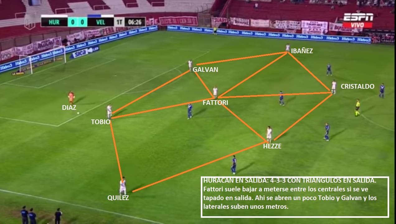 Este Huracán es un buen equipo. Muchos de los últimos equipos de Kudelka han dado facilidades, pero este es un rival más complicado. Arquero y centrales de experiencia, un 5 muy interesante y completo, 2 internos dinámicos y sacrificados, un extremo desequilibrante e intenso y 2 delanteros uruguayos muy sacrificados y con gol. Como dijimos hoy, los 6 puntos de 12 son un poco mentirosos, porque el Globo ha jugado bien. Ha presionado bien, ha atacado bien y ha demostrado variantes. Le han convertido varios goles también, por centros o pelotazos cruzados y por alguna pelota parada. Debe corregir cosas, quizás para defender las bandas. El equipo sale con un 4-3-3, pero en salida muchas veces Fattori se mete entre los centrales para armar línea de 3, con los laterales más altos. Hezze es el interno que juega más cerca de Fattori, mientras que Cristaldo se acerca más a los puntas. Cabral es quien da la amplitud por izquierda, mientras que el lateral Quilez lo hace por derecha. A partir de esa forma de ocupar los espacios, Candia puede pisar más el área. Es un 4-3-3 pero la función de los extremos es diferente. Es un equipo que puede ser intenso, porque tiene jugadores de buena intensidad. En la Bombonera igualmente su postura puede ser diferente y apostar a ser un bloque y salir rápido con Cabral y los puntas o alguna llegada de Cristaldo.