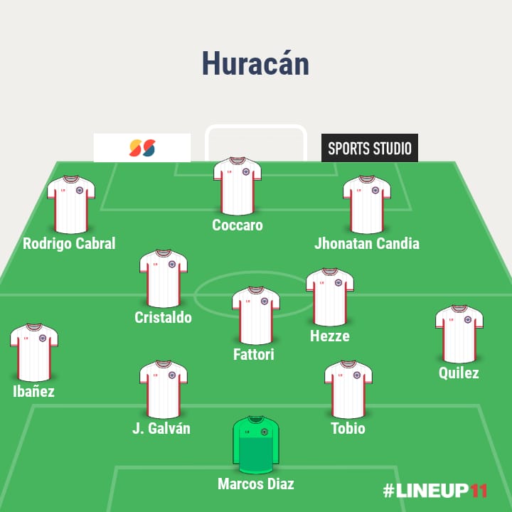 ¿Cómo formará el equipo de Kudelka?. La idea del entrenador es repetir equipo, algo que no pasa hace 27 partidos. Luego del gran triunfo ante Vélez, no ve necesidad de cambiar. Probable: Marcos Diaz; Quilez, Tobio, Galván, Ibáñez; Hezze, Fattori, Cristaldo; Candia, Coccaro y Cabral. Un 4-3-3 en ataque, que en defensa se convierte en 4-1-4-1.