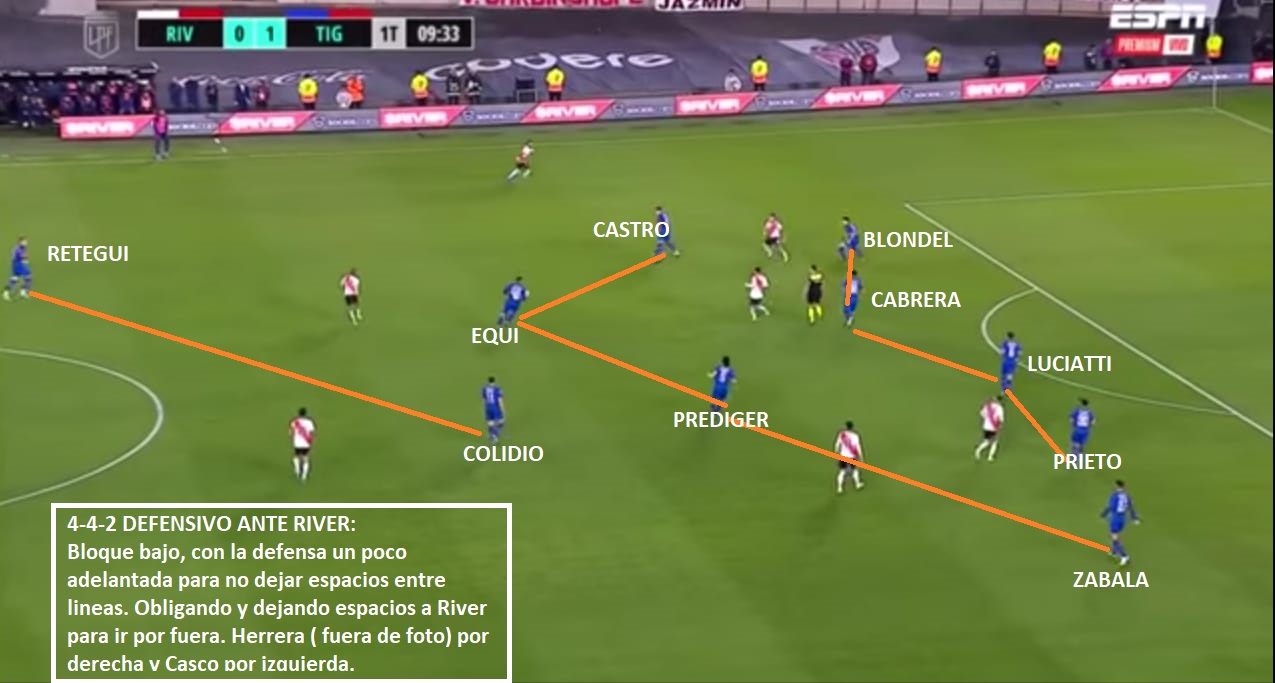 Martínez en general ha apostado al 4-2-3-1, pero no siempre sus sistemas son simétricos. Generalmente, uno de los que van por afuera suele saltar a presionar al central rival y no retrocede con el lateral, quedando para defender con un 4-4-2. Últimamente, Martínez ha priorizado cerrar más el carril central y tapar el pase de los centrales, que evitar la subida de los laterales. En los partidos pasados siguió con su estilo de cambiar. Ante Unión busco con un 4-2-3-1 donde Alexis Castro jugó más del medio a la izquierda y suelto y Zabala hacia su trabajo de cerrarse o armar el 4-4-2, mientras que Protti iba a la derecha. Ante Barracas decidió hacer ingresar a Menossi por Equi, Obando por Alexis Castro y Colidio por Zabala. En ese caso el sistema fue más cercano al 4-4-2. Ante el Xeneize estaría repitiendo 9 de 11 jugadores, con la excepción de Castro lesionado y Luciatti expulsado. Seguramente buscará implementar una idea cercana a la del 2do tiempo de esa final, con Equi Fernández más cerca de Prediger, para atraer a los volantes de Boca y ganar la espalda de Molinas con Blondel o Protti.