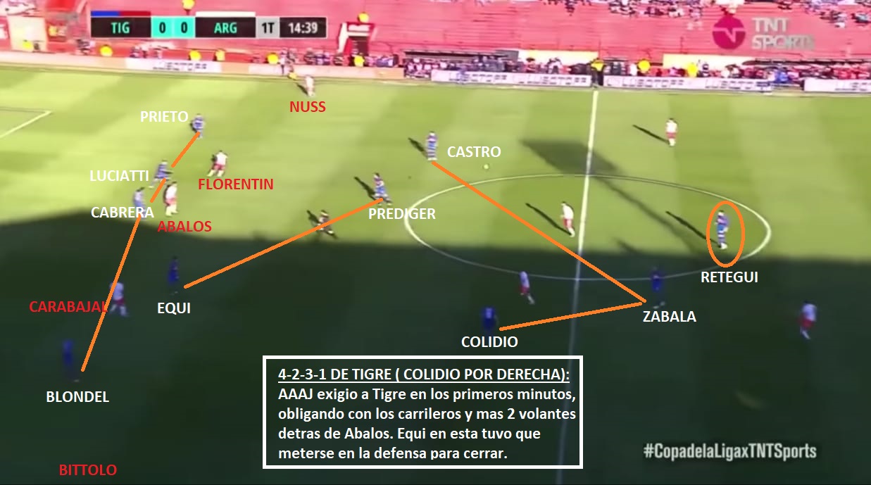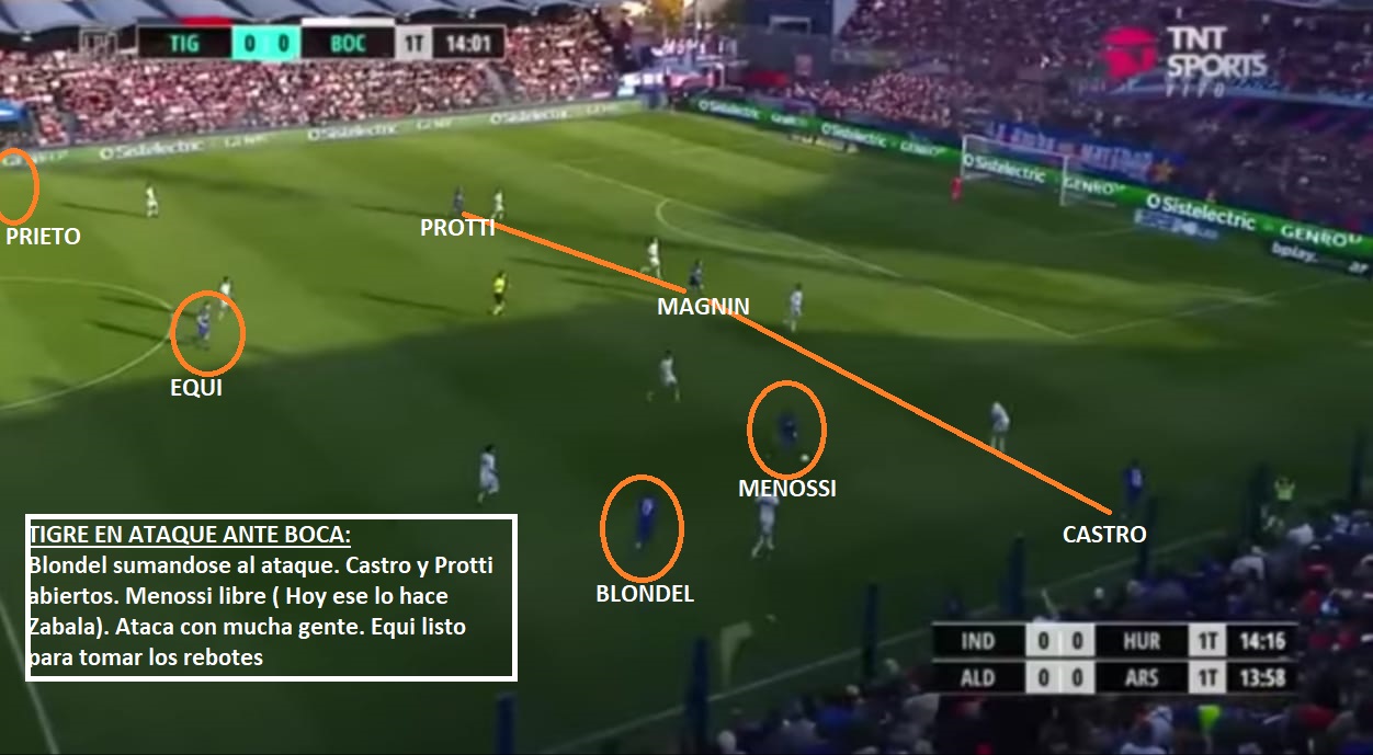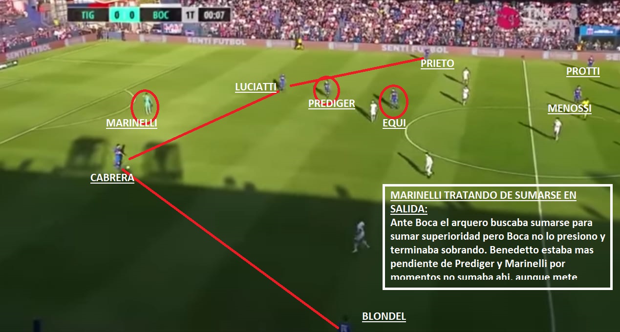 - Zona izquierda de Varela. Al costado de Alan y delante de Fabra. Ahí es donde venimos insistiendo que hay una debilidad. Aguirre en Lanús, Ojeda en Godoy Cruz, Rojas en Racing, Pitton en Arsenal, Metilli en Central Córdoba. Cuando los rivales le dan libertad al que juega por la zona derecha para cerrarse, Boca no lo marca bien. Es un hueco que no es responsabilidad de nadie en particular, pero si de todos. Varela, Oscar Romero o Ramírez, Fabra. No hay buena coordinación para taparlo. Tigre tratará de poner a Protti ahí o si no a Blondel que suele buscar la espalda del interno rival.