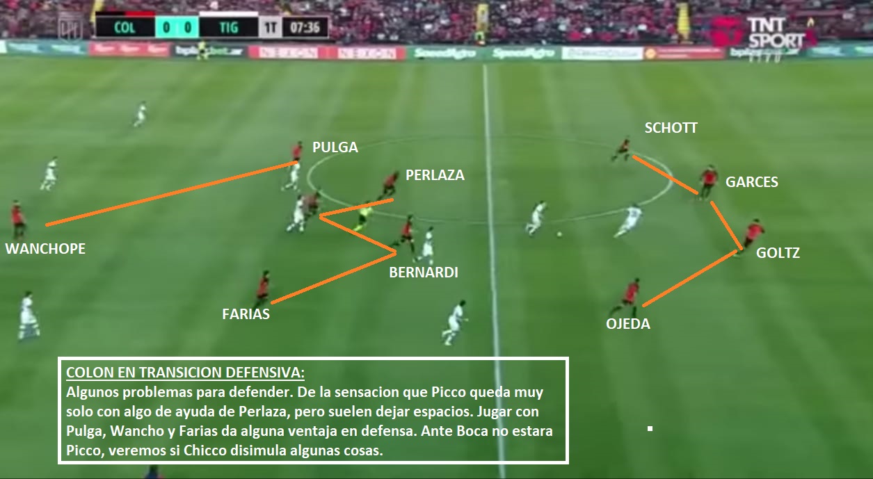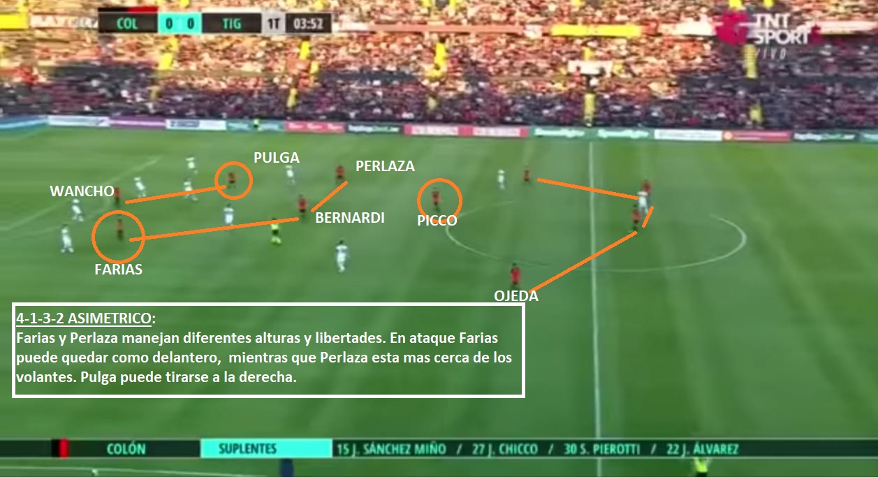- Payero y Romero ganando las espaldas de Chicco. Colón viene dando ventajas en el medio. Veremos si Marini puede corregirlas. ¿Perlaza será doble 5?. ¿Dónde jugará Bernardi? Si es Bernardi el que juega por dentro, seguramente Chicco juegue muy solo. Payero debería ganar altura para aparecer por su derecha y armar una sociedad con Langoni. Oscar Romero, por comodidad, seguramente se acerque a Varela.