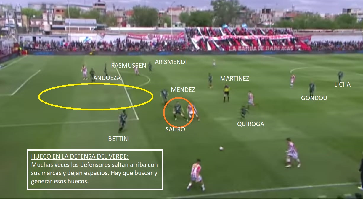 - Langoni. Luca será clave hoy. Los laterales de Sarmiento a veces saltan bastante alto para marcar o incluso los centrales. Se generan algunos espacios que se pueden atacar. Sumado a eso Rasmussen el lateral izquierdo es pesado y hay que atacar la espalda. Quizás sea un partido donde vea mucho la pelota por arriba, pero cuando le toque jugar por abajo debería marcar diferencias.