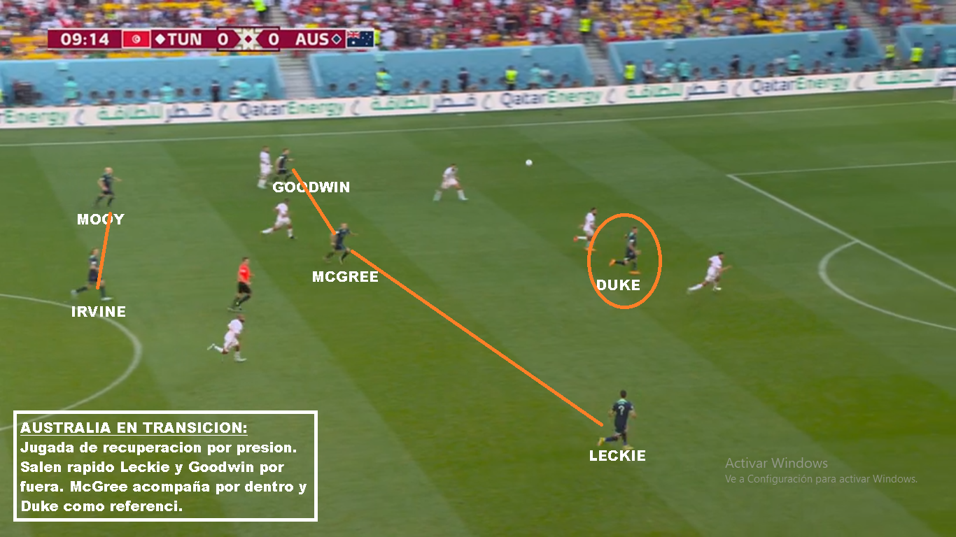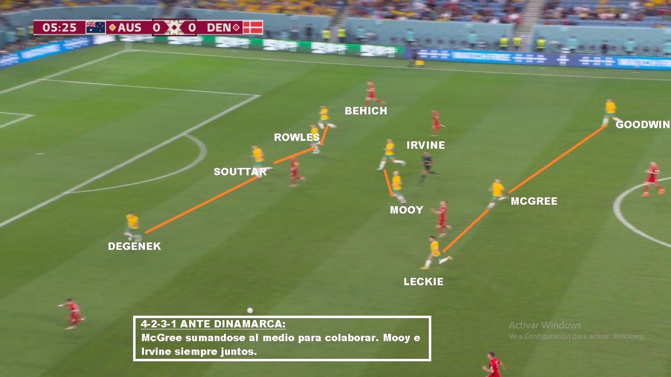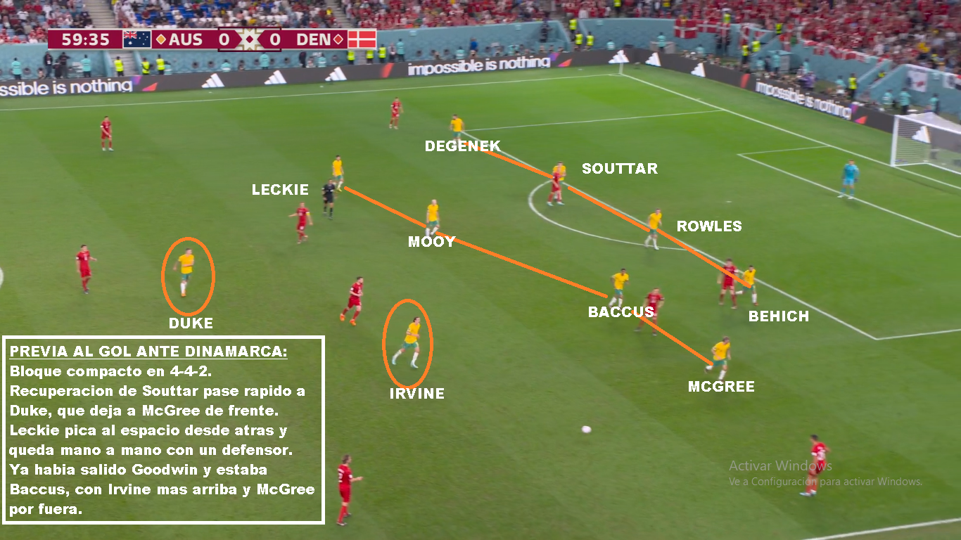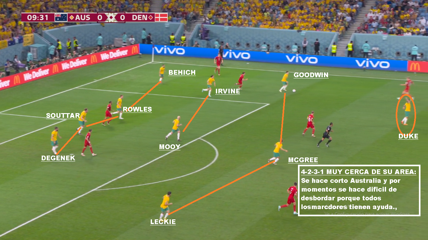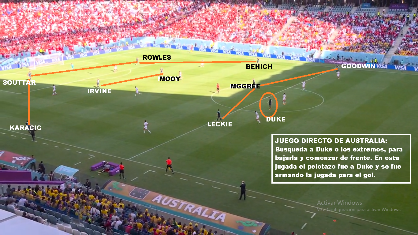 Australia es un buen equipo, que llega a esta instancia por lo que ofrece colectivamente. Es un equipo solidario, donde todos corren y cierran espacios. Más allá de las similitudes con Polonia por su poca posesión, son equipos diferentes. Los Australianos salen mucho más rápido en transición y presionan un poco más alto, si el rival no está cómodo. Una vez que el rival sale comodo, repliegan más. Buscan forzar el error, para castigarlo. La diferencia con Polonia, es que mientras lo Europeos tienen al 9 del Barcelona, al 10 del Napoli y al arquero de la Juve, acá el jugador de más nivel juega en el Celtic de Escocia (Mooy). Goodwin y Leckie juegan en la Liga Australiana, Duke el 9 juega en la 2da de Japón, Irvine juega en la Bundesliga 2, Souttar y McGree juegan en Championship (2da de Inglaterra). Y la mayoría de los casos son similares. No tienen jerarquía, pero sí un gran sistema colectivo. Que haya perdido con Arabia en eliminatorias y que haya quedado tan lejos en las posiciones, puede ser una medida para Argentina. También que le haya ganado por tan poco a la Emiratos Árabes del Vasco o la Perú de Gareca. Hay mucha diferencia de jerarquía, pero luego son 11 contra 11. El equipo de Arnold, busca atraer las presiones rivales, para saltar con los laterales altos o buscando en juego aéreo a los extremos. Duke suele retroceder bien para evitar que lo anticipen. Si logran recibir la 2da pelota, son peligrosos. Leckie y Goodwin son rápidos, McGree tiene talento ( Juega en el Middlesbrough). Sus mayores debilidades están en las bandas. El lateral derecho ha sido cambiado, porque siempre le llegan por esa zona. Mbappe bailo a Atkinson y Karacic evidentemente no convenció ante Túnez. Es la hora de Degenek, que además te suma cm para el juego aéreo. Si de juego aéreo hablamos hay que decir que tiene mucha altura. Souttar (1.98), Degenek(1.87), Irvine (1.89), Rowles(1.85), Duke (1.85). Leekie y Goodwin también superan los 180 cm. Otro equipo alto, que sin embargo ante Francia recibió 3 goles de cabeza, por marcar mal, los centros laterales. En síntesis, Argentina es mucho más que Australia y debería ganarle si tiene paciencia y si no comete errores graves. Será cuestión de repetir lo que se hizo contra Polonia.