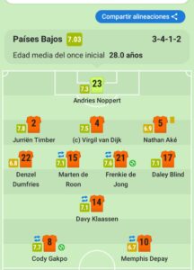 Países Bajos es un gran equipo. Era uno de los que podía aspirar a pelear por esta Copa del Mundo. Esta entre los 8 mejores. Un equipo con una línea defensiva llena de jerarquía, conformada por un jugador de Ajax, otro de Liverpool y otro del City ( Con De Ligt del Bayern y De Vrij de Inter en el banco). Luego en el mediocampo tiene la jerarquía de Frankie De Jong, mientras que en la delantera un Memphis Depay que en Paises Bajos rinde mas. El resto de su poderío está también en los carrileros, Dumfries y Blind. Por último Cody Gakpo. Había dudas con el equipo por la falta de variantes ofensivas. Gakpo solucionó un montón de cosas., porque puede ser el enlace o también punta.