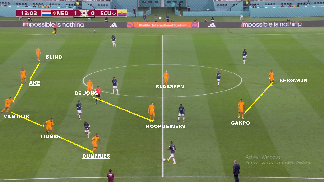 Posición media de Paises Bajos. Dumfries mas alto que Blind. Casi un volante.