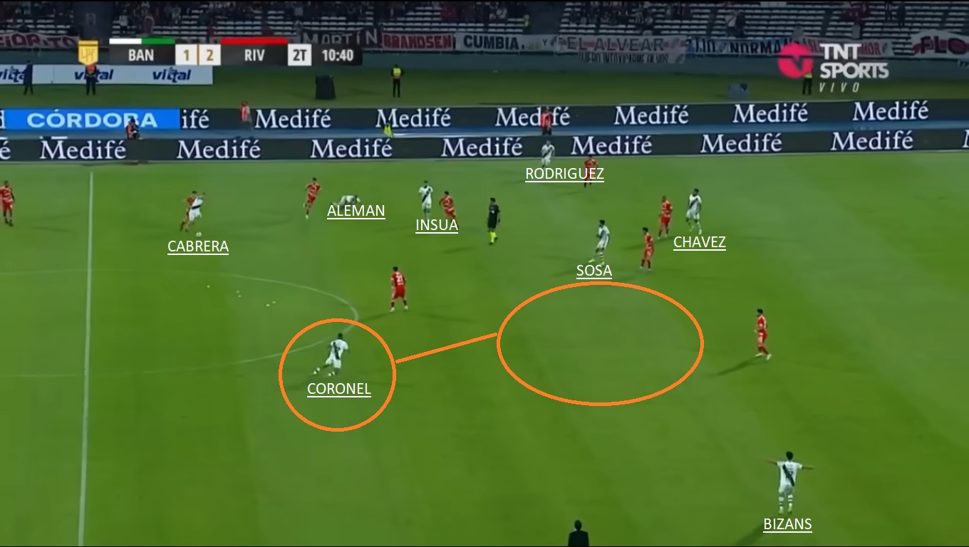 - Zona Fabra. Defensa lo exploto muy bien y Sanguinetti sabe que en Boca juegan los mismos. Villa seguirá ahí?. Hay que tener cuidado porque Coronel se ubica muy bien en general y si no lo siguen nos puede generar complicaciones. Además, en esa zona puede jugar Alemán o Bizans, los cuales son muy distintos. Hay que tomar precauciones.