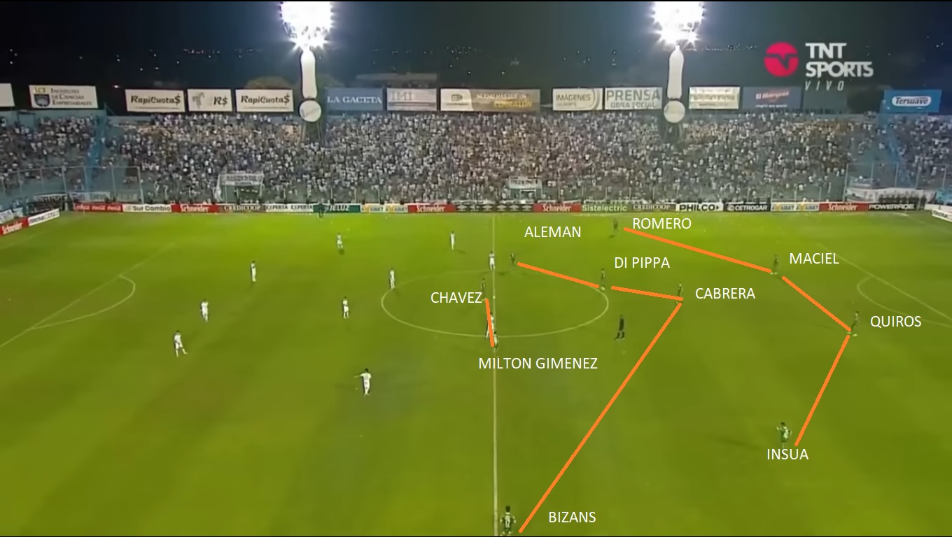 En lo individual hay poco para destacar. La jerarquía de Alemán y su pelota parada, algo de Bizans, de Chávez y de Cabrera. El único gol lo marco Chávez, porque el otro fue en contra. El «Negro «tiene 1 gol con Huracán y otro con River. Promedia 0.2 pases claves, 2.5 disparos, 1.3 gambetas y 6 duelos ganados por partido. Alemán promedia 2.5 pases claves, 2.8 centros completados, 1.8 quites, 1.2 regates y 7.2 duelos ganados. Además, tiene 2 grandes chances creadas. Emanuel Coronel es otro que suele destacarse en el lateral derecho. Promedia 1.4 pases claves, 2.4 quites, 1.6 intercepciones, 1.6 despejes y 6 duelos ganados. Bizans es otro que ha cumplido en estos partidos. Hizo un gol con River y es la cuota de desequilibrio. 1.2 regates, 0.4 pases claves, 0.4 disparos y 3.4 duelos ganados por partido. En el medio uno que juega siempre es Alejandro » Coló» Cabrera. 85% en pases, 2.8 quites, 1.4 intercepciones, 1.4 despejes, 1.4 regates y 8 duelos ganados por partido.