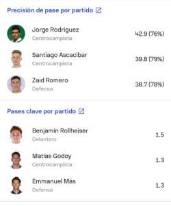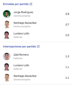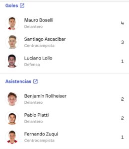 En lo individual hay mucho para destacar, principalmente en los últimos encuentros. El goleador es Mauro Boselli con 4 y también tiene 1 asistencia, pero tiene 5 grandes ocasiones falladas. Promedia 1.9 disparos por partido y 0.6 pases claves. Otro destacado es Santiago Ascacibar. Jugando en otras posiciones a sus ideales ha aportado mucho. Tiene 3 goles y 1 asistencia y promedia 0.5 pases claves, 1.8 disparos, 2.7 quites, 1.1 intercepciones, 0.9 despejes y 5.3 duelos ganados. Otro destacado en Benjamín Rollheiser. El ex River tiene asistencias y 3 grandes ocasiones creadas. Además, promedia 1.5 pases claves, 1.4 quites, 2.5 regates y 5 duelos ganados por partido. Jorge Corcho Rodríguez es otro destacado. Tiene 1 gol y promedia 0.6 pases claves, 2.9 quites, 4.1 despejes, 0.8 intercepciones y 5.6 duelos ganados. En lo defensivo, el más destacado ha sido Luciano Lollo, que promedia por partido 2 quites (Aún no fue gambeteado), 1.1 intercepciones, 5.4 despejes y 4.9 duelos ganados (65%).