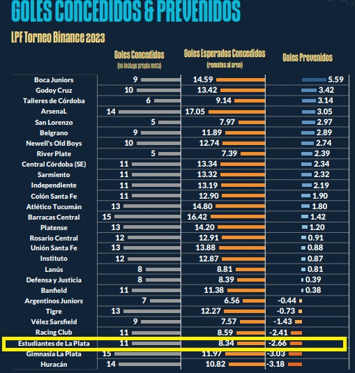 En las estadísticas colectivas, hablamos de un equipo que convirtió 12 goles en 11 encuentros y que también recibió 12. 3 vallas invictas en 11 partidos. También promedia 14.1 disparos por partido, de los cuales 4.2 fueron al arco. También tiene una media de 1.5 ocasiones claras de las cuales falló 1. Su XG a favor es de 13 aproximadamente, muy cercano al que tiene Boca y San Lorenzo nuestro último rival. Su posesión promedio es del 55% con 332 pases completados por partido, 25.5 pases largos y 6.7 pases acertados. En lo defensivo estamos ante uno de los equipos con peor ratio de goles prevenidos. Sus rivales tuvieron merecimientos para convertir 8.34 (4° mejor número después de AAAJ, San Lorenzo y River), pero, sin embargo, recibió 11 goles. Ahí Andújar queda en deuda.