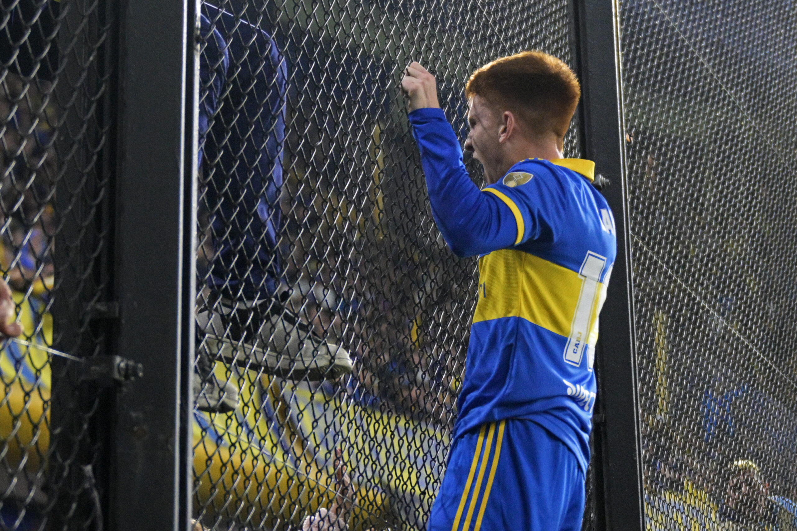 El jugador de 18 años, festejó su gol, alocadamente colgado del alambrado, y celebró junto a todo el publico presente, al estilo de grandes jugadores históricos de Boca. El juvenil del «Xeneize» reveló cual fue su sensación y que pasó por su mente tras convertir por primera vez a nivel profesional: «Todo el sacrificio que hicimos con mi familia. Estoy desde chiquito acá en la pensión, eso y a pensar en lo que viene».