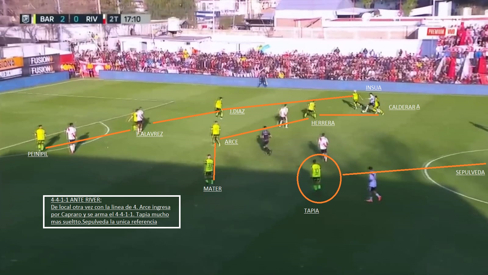 «Tenemos que seguir de la misma manera, siendo el mismo equipo comprometido, solidario y no dando ninguna pelota por perdida. Todo eso nos está permitiendo mirar otra tabla». Esa descripción de su entrenador, es la perfecta para este Barracas. Solidario. Todos corren, todos meten. Mater y Calderara son los que atacan por fuera como volantes, pero muchas veces han sido laterales, eso dice mucho. Iván Tapia es quizás uno de los pocos que se caracterizan por la buena técnica y el pase. El resto luchan. Sea Sepúlveda o Domínguez arriba, se las arreglan muchas veces contra 1 o 2 para pivotear, bajar pelotas, siendo autosuficientes. Un equipo que no da ninguna por perdida y que es inteligente para atacar y aprovechar sus opciones. Doble lateral para fuera para atacar, buenas referencias aéreas en ataque, la pegada de Iván Tapia en jugada o en pelota parada. Que no le conviertan goles en 9 de los 15 de Rondina, indican lo que es como equipo. Además, tiene la capacidad de cambiar de sistema de un 5-4-1 a un 4-4-1-1 o 4-2-3-1 sin resentirse. Le gano a River y le empató a Racing jugando con 4 atrás y le gano de visitante a Tigre y Belgrano jugando con 5. Un buen trabajo el de Rondina.