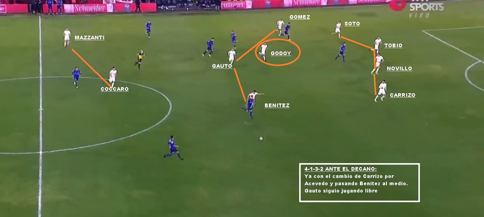- Vázquez y Merentiel. Chance para una dupla de nros 9. Ante la ausencia de extremos desequilibrantes, era hora que Almirón apueste por este doble 9. Merentiel puede ir más al espacio por fuera y Vázquez ser la referencia. Pueden complementarse. Ya no estaba funcionando lo de poner a Barco de extremo, por un lado, y del otro a Medina o Pol. Había que agregar un delantero más.