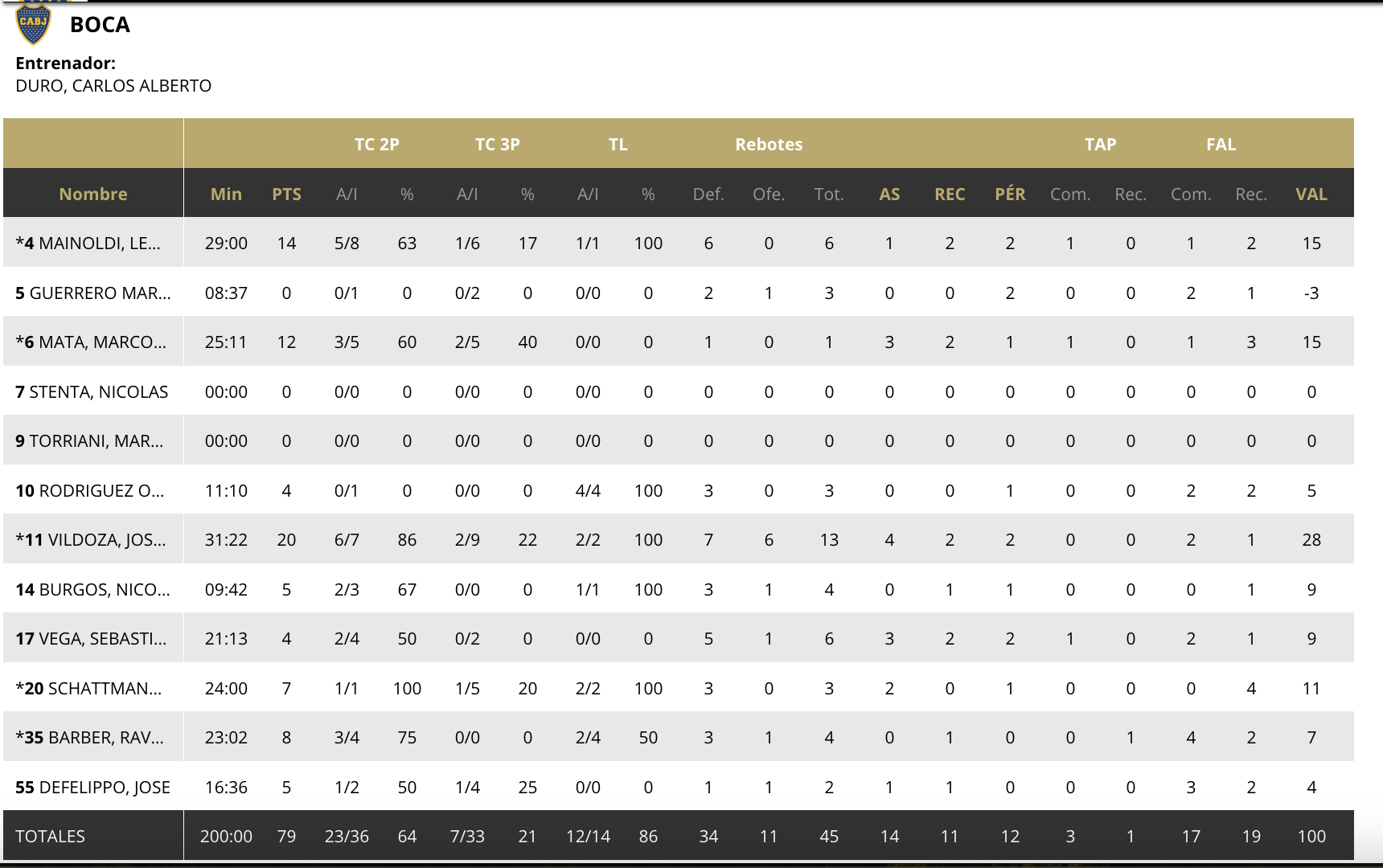 Boca (con un récord de 5 victorias y una derrota) avanzó a la cima de las posiciones en la Liga Nacional de Básquetbol (LNB), tras derrotar como visitante al ascendido Zárate Basket (1-4), por 79-73. En el quinteto xeneize, que venía de perder en forma ajustada y como local con Gimnasia de Comodoro Rivadavia por 83-82, se destacó el base cordobés José Vildoza. El exarmador de San Lorenzo y Flamengo de Brasil finalizó con 20 tantos (6-7 en dobles, 2-9 en triples, 2-2 en libres), 13 rebotes, 4 asistencias y 2 recuperos en 31 minutos. Por su lado, el ala pivote santafesino Leonardo Mainoldi contribuyó con 14 unidades, 6 rebotes, 2 robos, un pase gol y una tapa en 29m.