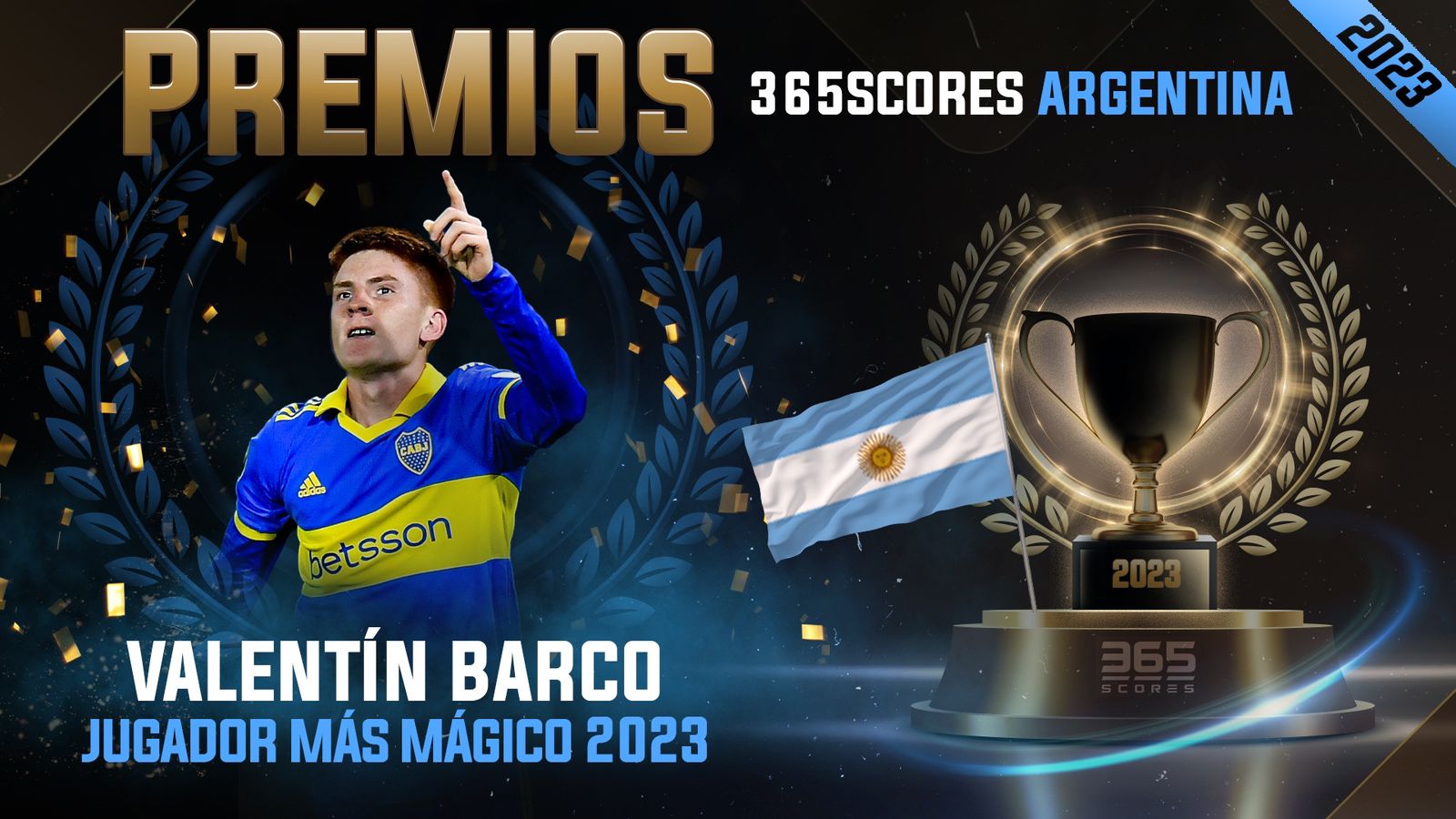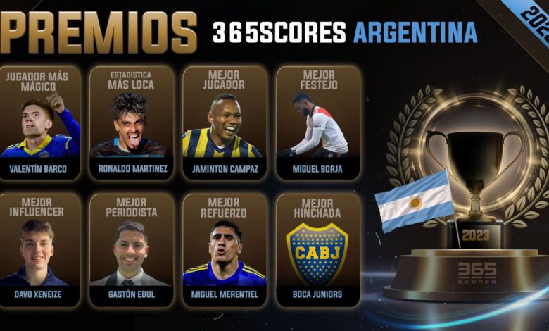 Se realizó la primera edición de los Premios 365Scores del fútbol, un novedoso galardón que está en todos los detalles. Ocho fueron las ternas seleccionadas, y Boca triunfó en cuatro de ellas. Valentín Barco ganó como el Jugador Mágico; Miguel Merentiel como el Mejor Refuerzo; la hinchada de Boca como la mejor del 2023 y Davoo Xeneize como el Mejor Influencer.