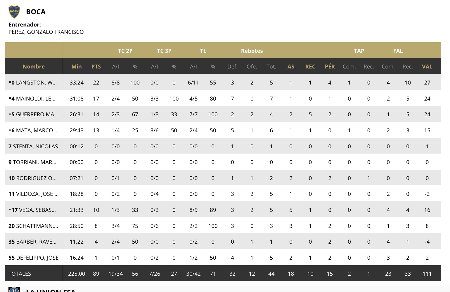 El interno extranjero Wayne Langston, con una planilla de 22 tantos (8-8 en dobles, 6-11 en libres) y 5 rebotes en 33 minutos, resultó uno de los valores más destacados del elenco ganador. Además, el ala pivote santafesino Leonardo Mainoldi colaboró con 17 unidades (3-3 en triples) y 7 rebotes en 31m.