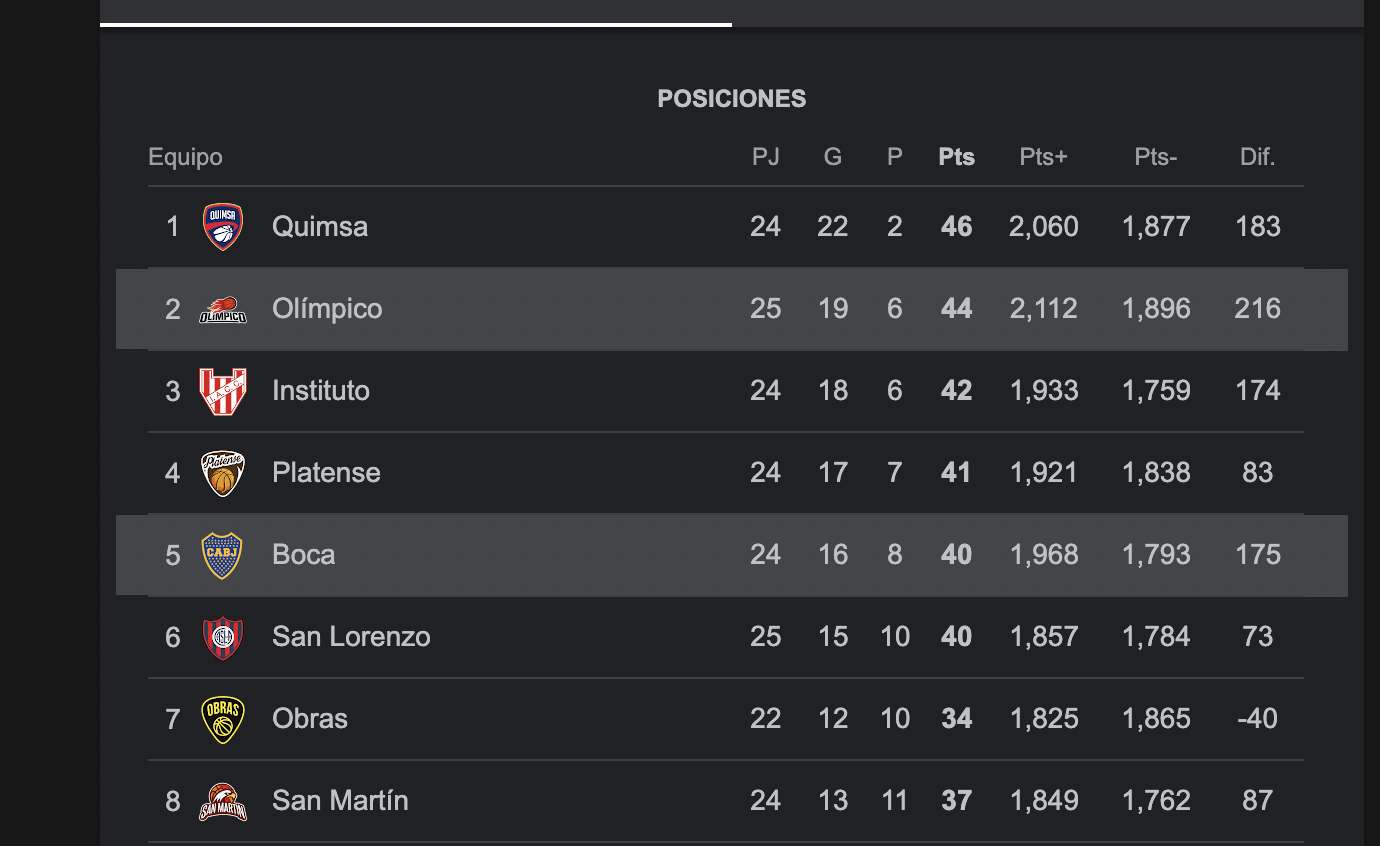 Boca dio el batacazo en Santiago del Estero: tras ir abajo en el marcador durante todo el partido, derrotó a Olímpico de la Banda por 77-75 con un doble de Vildoza a cinco segundos del cierre. Sebastián Vega fue la figura con 16 puntos, 6 rebotes y 4 asistencias, acompañado por 15 unidades y 4 pases gol de José Vildoza, 13 y 6 recobres de Wayne Langston y 12 más 7 rebotes de Leo Mainoldi.