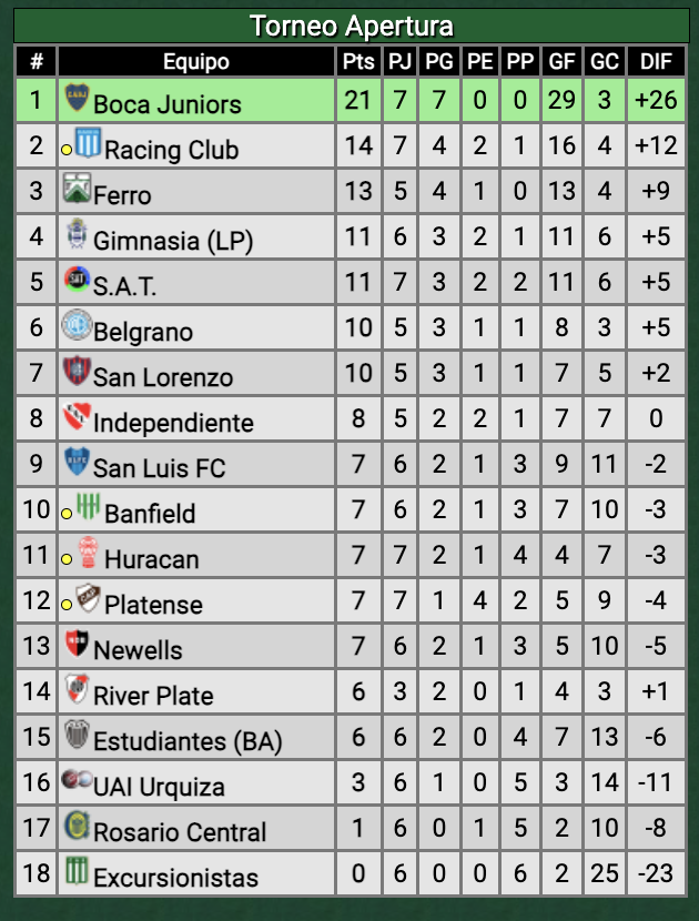 Este 2-0 le permite a Boca liderar con rendimiento ideal (21 puntos) y buena diferencia sobre su más cercano perseguidor, que por ahora es Racing, justamente su próximo rival en el Pedro Pompilio.
