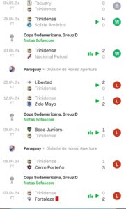 Post caída en la Bombonera, han sido 2 triunfos, 1 empate y 2 caídas. El triunfo clave fue ante Nacional de Potosí por 2 a 0 lo que lo deja 1 punto abajo de Boca. Puede soñar. En la Liga Paraguaya sigue muy mal estando en el puesto 11 con solo 11 unidades de 48 posibles. 3 triunfos, 2 empates y 11 caídas. En el 2024 lleva 5 triunfos, 4 empates y 14 derrotas. Jugando de local lleva solo 2 triunfos en 12 encuentros. Ahora llega con un invicto de 3 encuentros con 2 triunfos y 1 empate y sin recibir goles. Quizás su mejor tramo de este año.