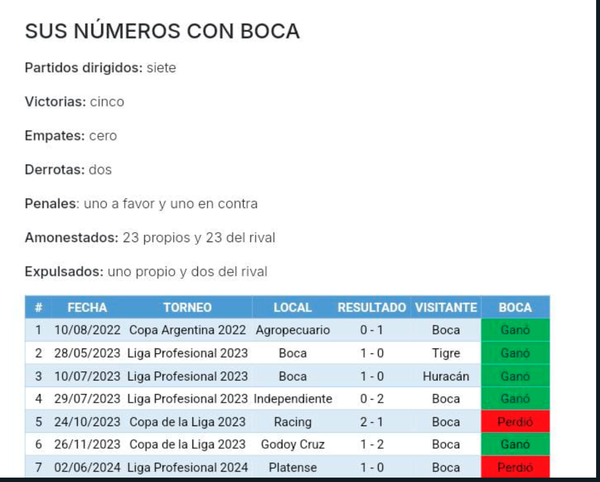 El “Xeneize” acumula cinco triunfos y dos derrotas. La última vez fue el 2 de junio en la caída por 1-0 ante Platense de visitante.