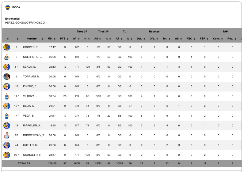 José Vildoza brilló como la figura del partido, aportando 25 puntos, 5 rebotes y 6 asistencias. También se destacaron Seba Vega con 17 unidades y 9 rebotes, Santi Scala con 13 puntos, Andrés Ibargüen con 12 y Marcos Delía con 11. Por el lado de La Unión, Romeao Ferguson lideró con 20 puntos, mientras que Manuel Rodríguez Ortega sumó 18.