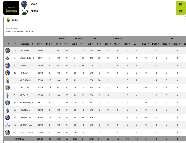 Para mencionar también la buena tarea de Delía aportando enormes defensas, el de Saladillo concluyó la planilla personal con 13 puntos en algo más de 21 minutos de juego.