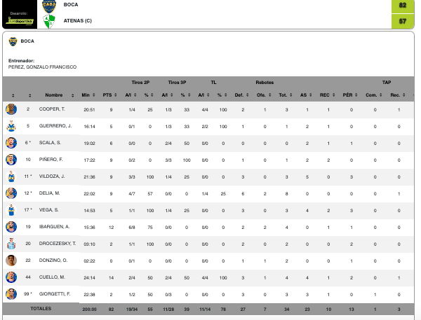 Entre los puntos altos del Xeneize se destacó Loku Cuello, con 14 puntos, 4 rebotes, 4 asistencias y una valoración de 16. También fue importante el trabajo del colombiano Andrés Ibargüen, quien sumó 12 unidades, 4 rebotes y 14 de valoración.