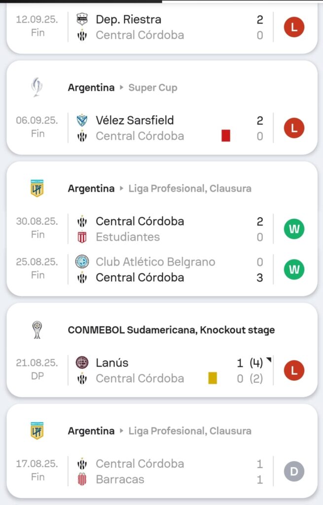 ¿Cómo llega Central Córdoba? Un 2025 con mucho movimiento para el equipo de Santiago. Copa Libertadores, Copa Sudamericana, Supercopa Argentina, Liga Argentina. En el torneo local está en el puesto 4to junto al Xeneize, con 13 unidades. Viene de perder la Supercopa con Vélez y además fue eliminado de la Sudamericana por Lanús por penales en octavos de final. En Libertadores quedó 3ro por detrás de Liga de Quitó y Flamengo. Ha ganado 5 de los últimos 10 encuentros.