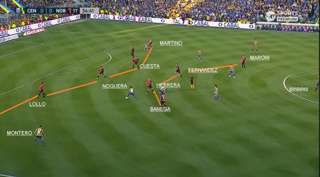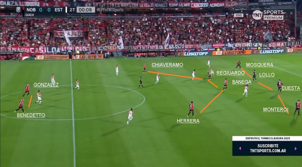No funciona este NOB y cuando las cosas estan asi en un club tan pasional las cosas cuestan mas. Cada partido el clima es complejo. Fabbiani no le esta encontrando la vuelta.En general siempre solía jugar con linea de 5, pero hace 4 o 5 partidos ha cambiado a linea de 4.Tampoco le esta sirviendo. Vermeos si repite. Ante EDLP dejaron muy solo a Piovi el 5. Eso no podra suceder ante Paredes.