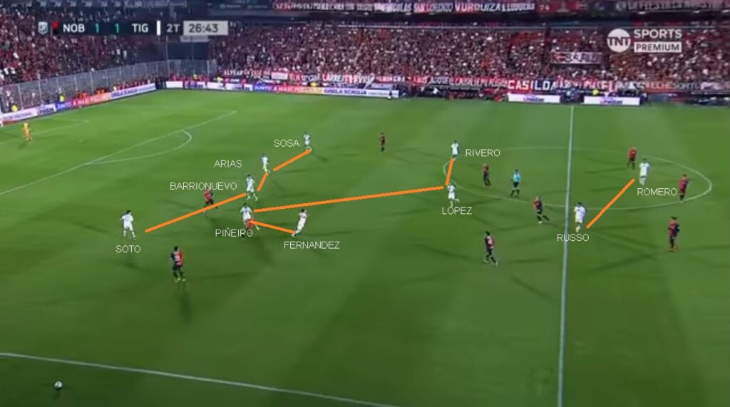 Los equipos de Dabove son siempre muy competitivos. Equipos agresivos, intensos, que no tienen tanta posesión, pero que no por eso dejan de atacar. Hoy suele jugar en un 4-3-1-2. La línea de 4 de Soto, Laso, Cardona y Álvarez se suele repetir. En el medio puede arrancar Jalil Elías por derecha o sino Julián López. El 5 también ha cambiado entre Piñeiro, Leyes u otro y por izquierda suele aparecer Medina, aunque antes ha aparecido Cabrera. Medina es quien da profundidad por izquierda, mientras que por derecha la profundidad la da Soto, ya que el volante por derecha suele cerrarse. Arriba dos delanteros potentes y rápidos. Ignacio Russo como el goleador y Romero con toda la potencia para jugar a la contra. Si tiene espacio, puede correr y lastimar, por su velocidad y potencia. Un equipo que irá a la bombonera a esperar, pero siempre buscando el error y salir rápido.