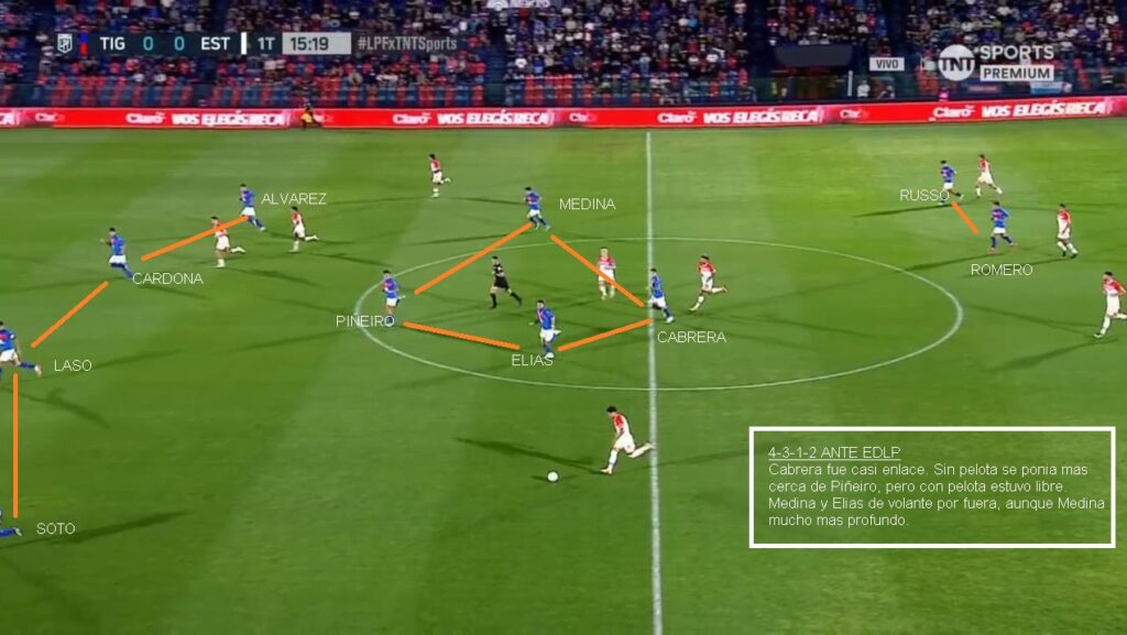 ¿Cómo formará el equipo de Dabove? Luego del triunfo ante Estudiantes, no debería sorprender si repite equipo. Jabes Saralegui seguiría afuera por lesión. El equipo del último partido: Zenobio; Soto, Laso, Cardona. Alvarez; Elias, Piñeiro, S. Medina; Cabrera; Romero e Ignacio Russo. Es un 4-4-2 marcado con Elías Cabrera soltándose un poco más y armando un 4-3-1-2.