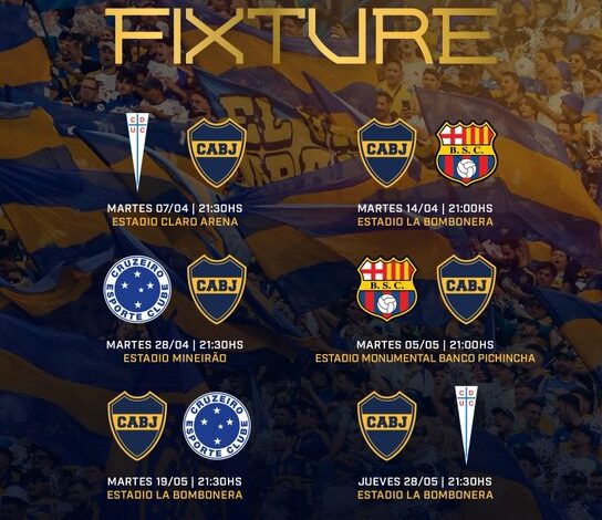 En la segunda rueda, Boca viajará a Ecuador para enfrentar a Barcelona SC el 5 de mayo a las 21:00 en Guayaquil. Luego será local ante Cruzeiro el 19 de mayo a las 21:30, y cerrará la fase de grupos en casa frente a Universidad Católica el 28 de mayo, en un partido que podría definir la clasificación a los octavos de final.