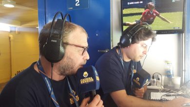 En la cabina 2 del estadio más lindo del mundo, en una plaza, en el medio del campo, en la…